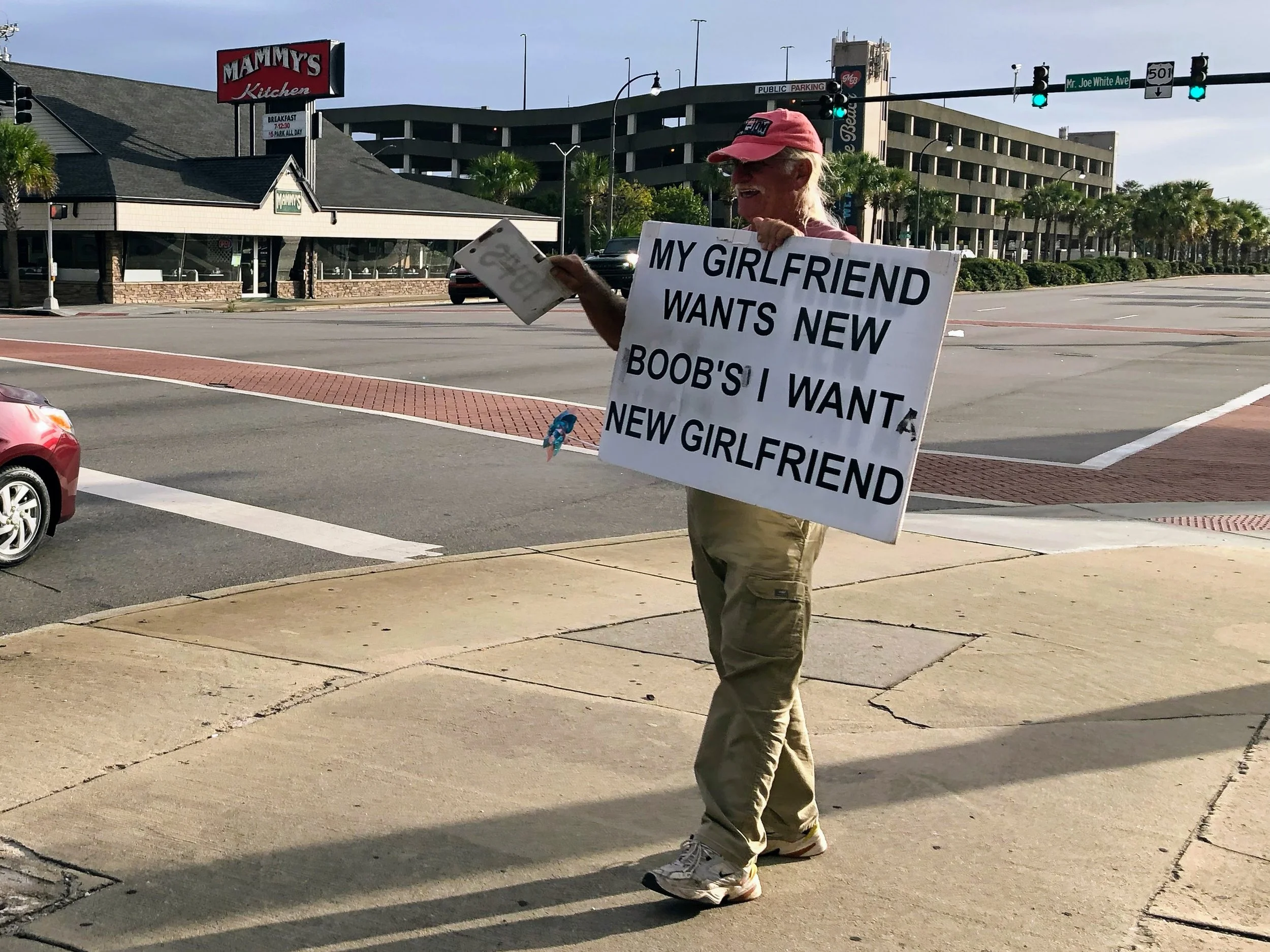 ‘My girlfriend wants new toys.’ Meet the man with a provocative sign in the Myrtle Beach area